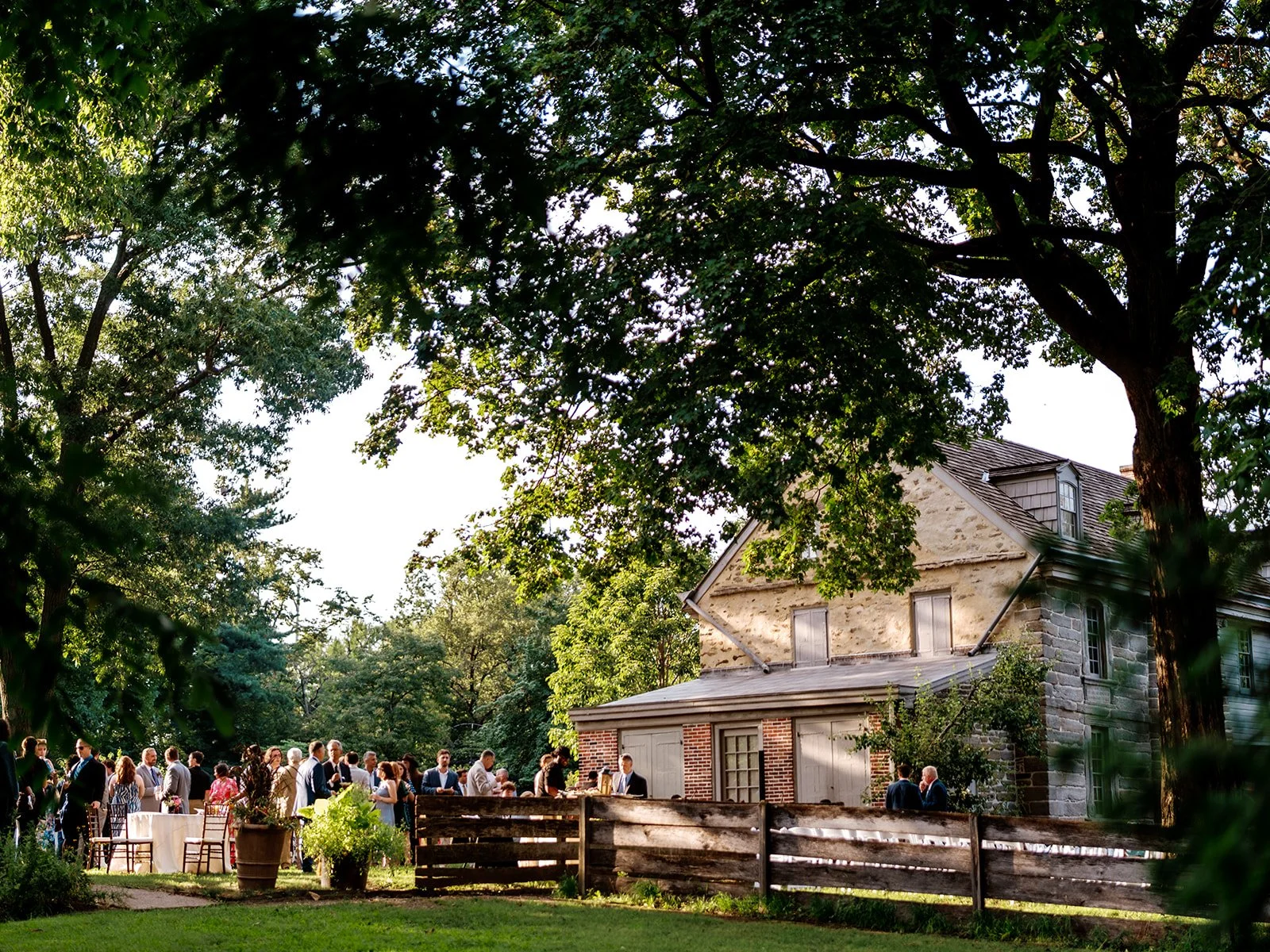 Hold your ceremony amid colorful gardens, enjoy cocktails on the slate terrace, and then celebrate under the customizable Estate Pavilion on this classic Bucks County property.