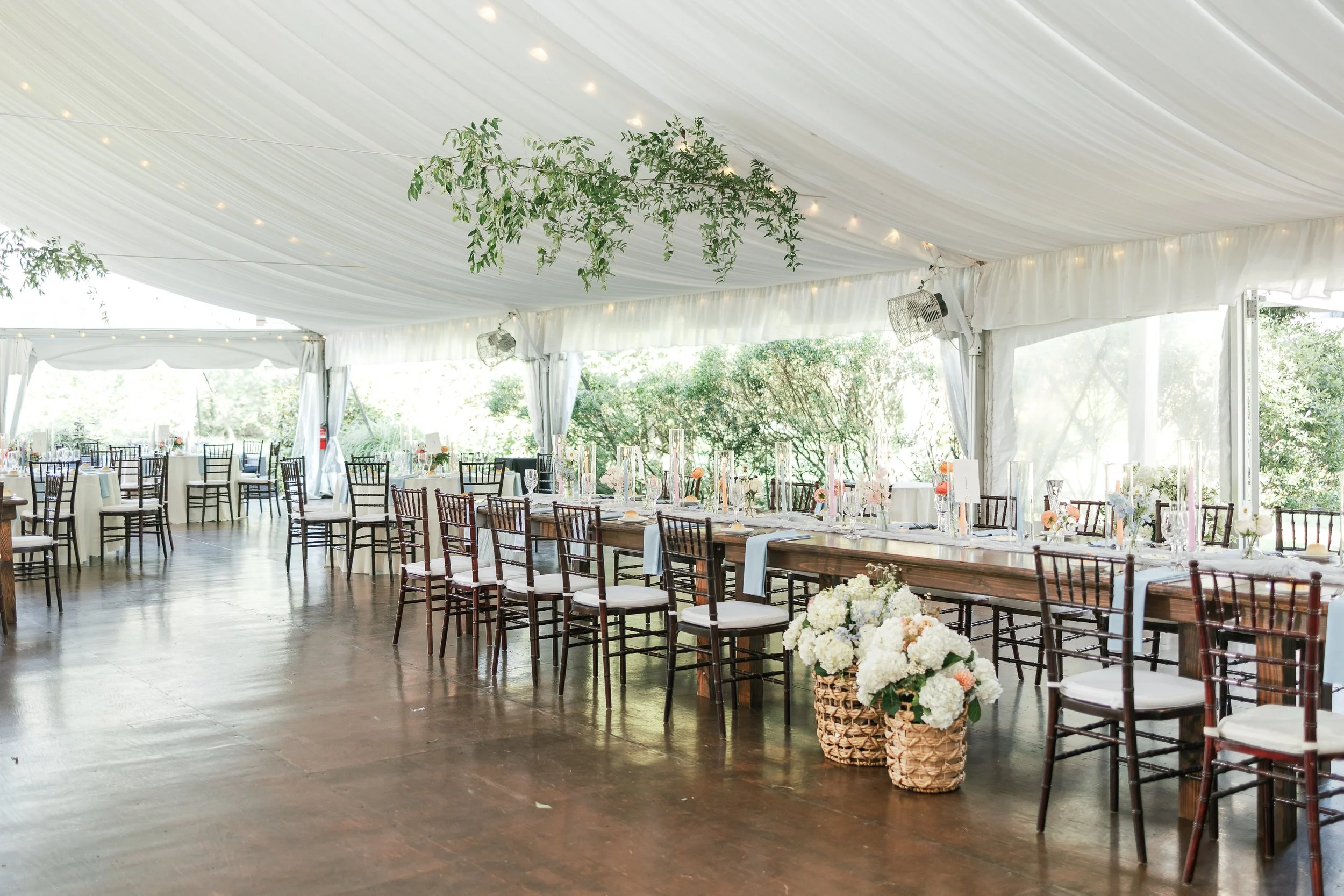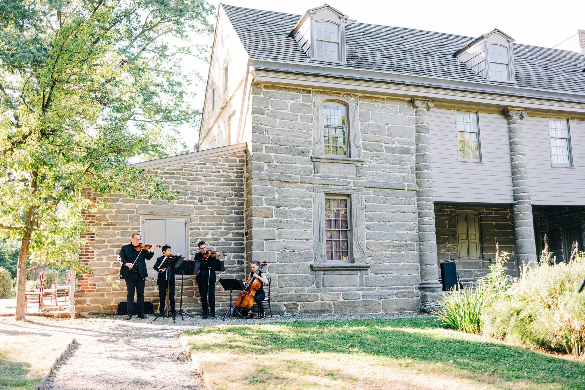 A photographer’s dream, the grounds and historic buildings are simply stunning. There’s a lovely get-ready area in the historic stone barn, with large windows for natural light. Choose a garden setting for your outdoor ceremony, with flowers and historic trees as a backdrop. Then guests can enjoy cocktails while they walk the grounds, play lawn games, or lounge on the patio. Celebrate in the beautiful new Eastwick Pavilion, with space for up to 300 guests and a large covered porch overlooking the river. There are excellent options for inclement weather, too.